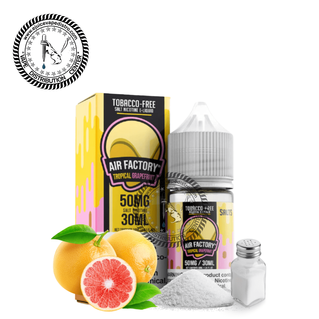 This premium salt nicotine blend is made by Air Factory, a brand known for quality and consistency in the vape world. Each 30ML bottle is filled with USA-made e-liquid that’s been carefully mixed to deliver reliable satisfaction. With its 50/50 VG/PG ratio, Tropical Grapefruit is designed for a balance of smooth throat hits and flavorful vapor production, making it a versatile choice for a wide range of pod systems.